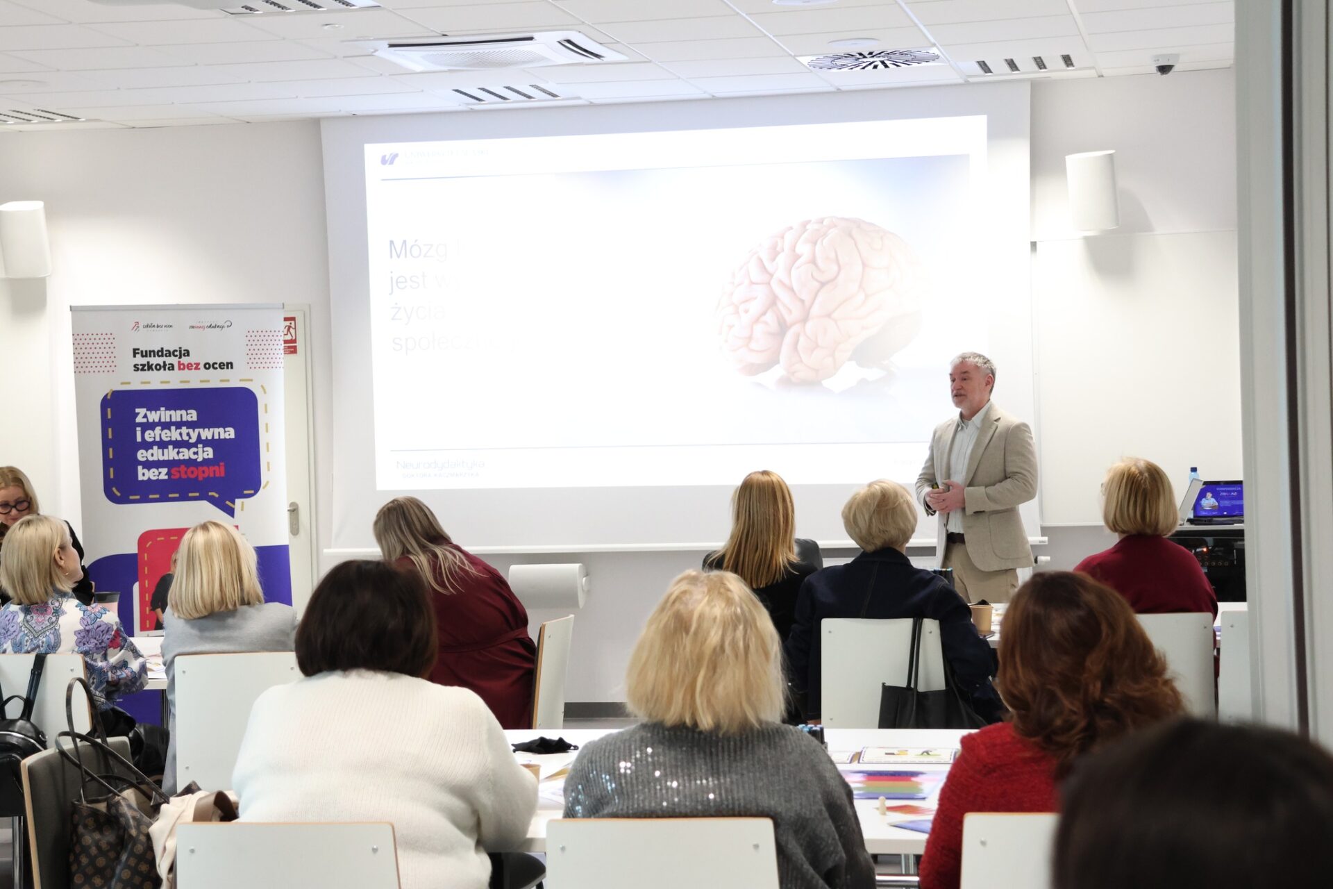 Ważnym punktem spotkania był wykład dr Marek Kaczmarzyk, prof. Uniwersytet Śląski w Katowicach pt. „Neurodydaktyka małego człowieka – mózg przedszkolaka: plac budowy i wyzwanie dla nauczycieli”, w którym w przystępny, a jednocześnie bardzo konkretny sposób pokazał, jak wiedzę o rozwoju mózgu dziecka przekładać na codzienną praktykę przedszkolną.